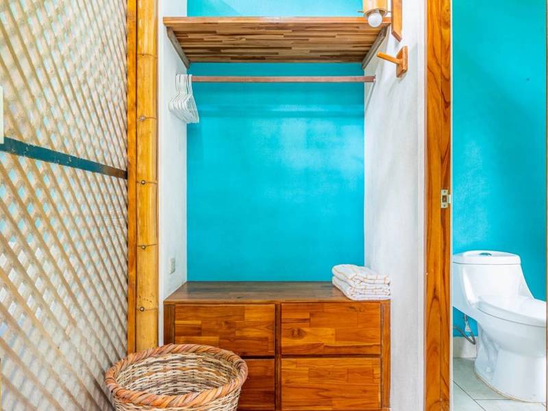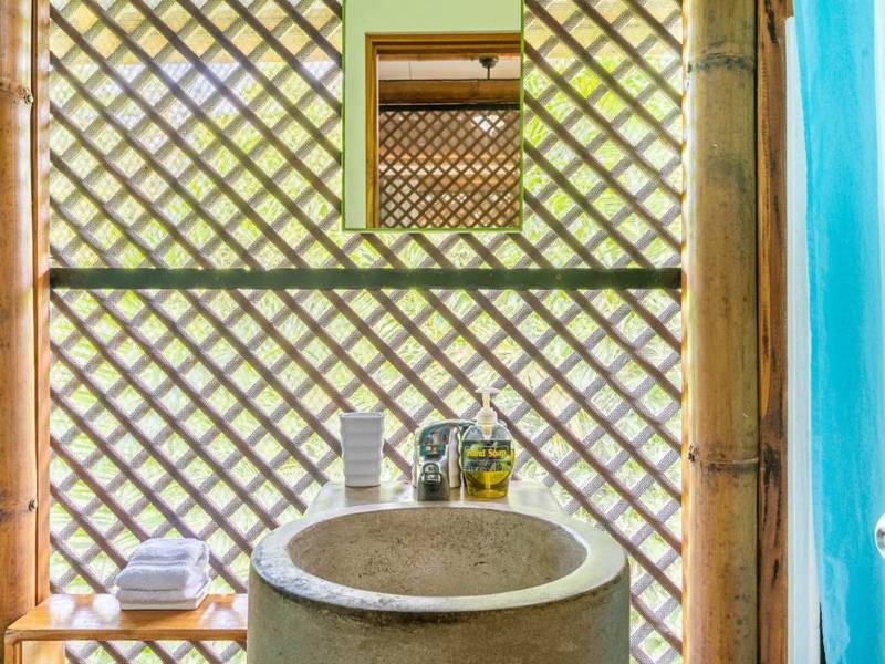 The dining area is spacious enough to host your guests or even convert into a yoga deck. The lower bedroom, designed strategically, captures the ocean breeze. Privacy screening in the master bath ensures airflow.