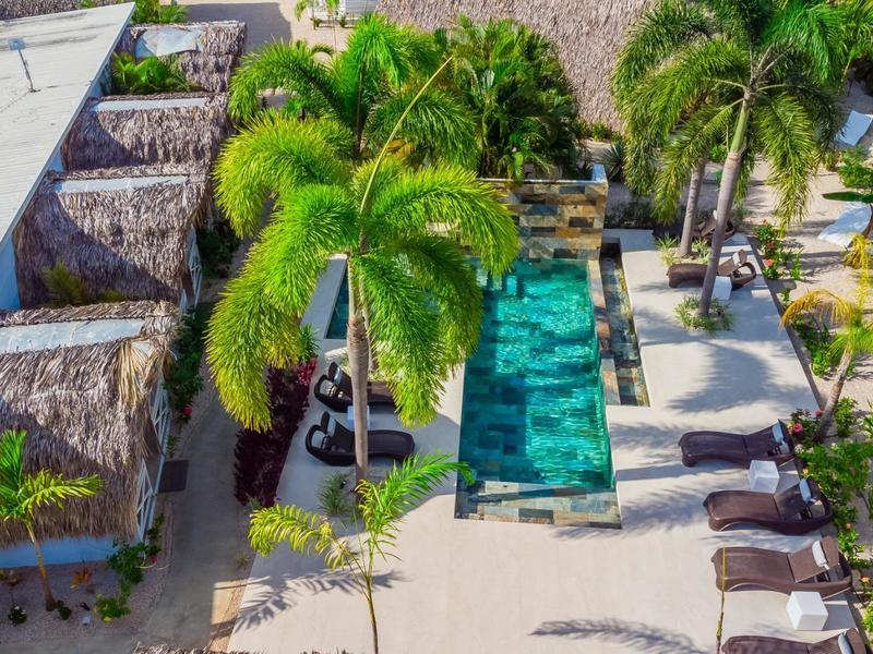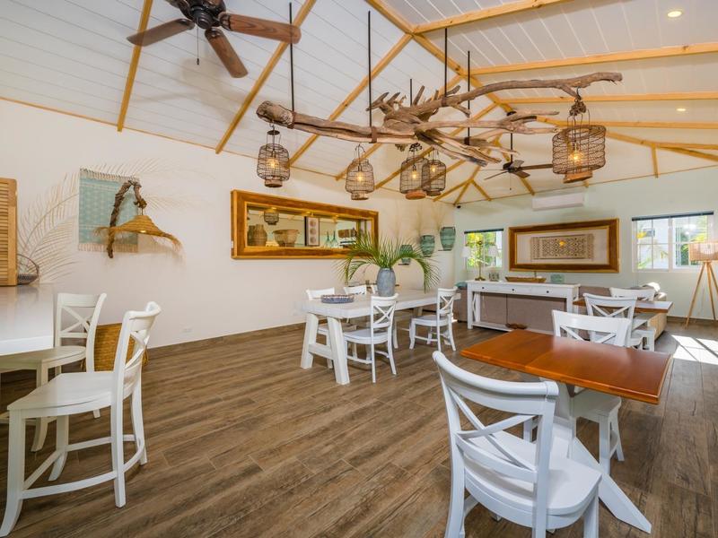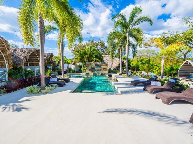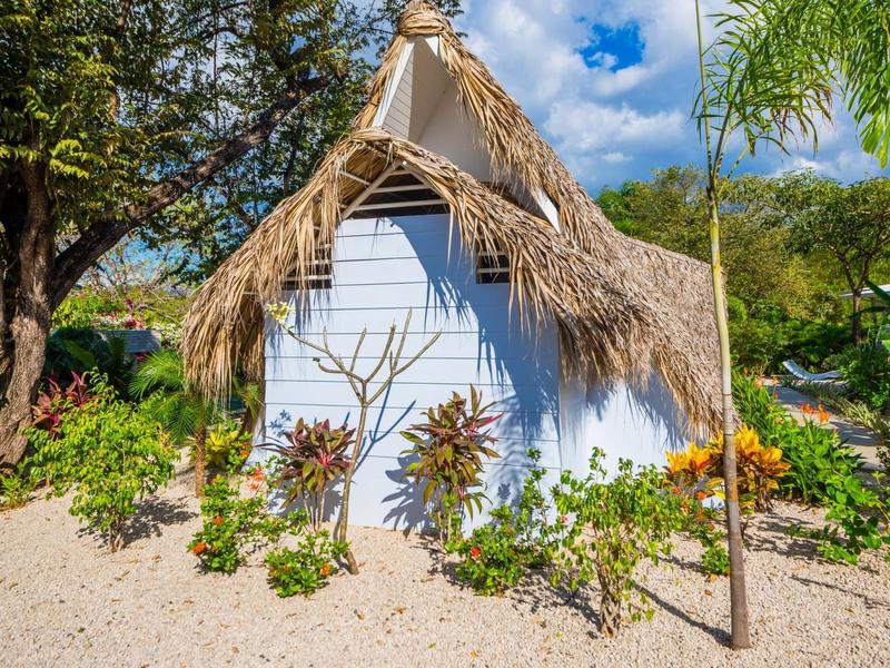 Hotel Les Voiles Blanches (White Sails Hotel) is reminiscent of an intimate French Polynesian compound with its arching, thatched-roof structures, and focus on tropical gardens and outdoor living spaces. The complex was built in 2015 and completely gutted and renovated throughout 2022. There are two - 2-bed homes, five -1 bed cabins, a massive dining room/living room and a shared kitchen for guests, a spa, a laundry facility, three pools, and one jacuzzi onsite; all surrounded by incredibly large palm trees and local flowers and plants.