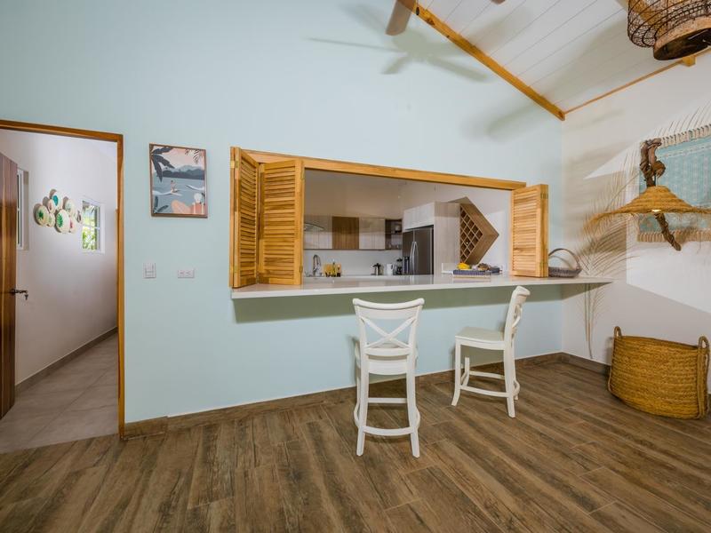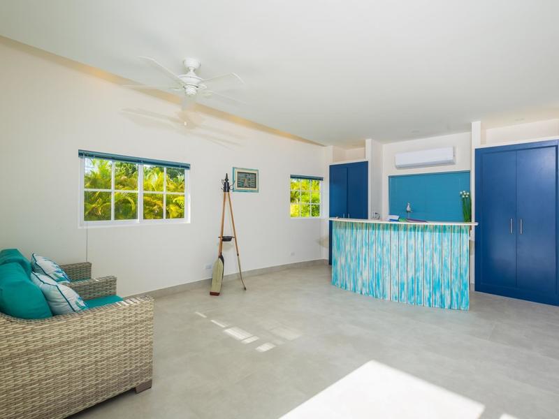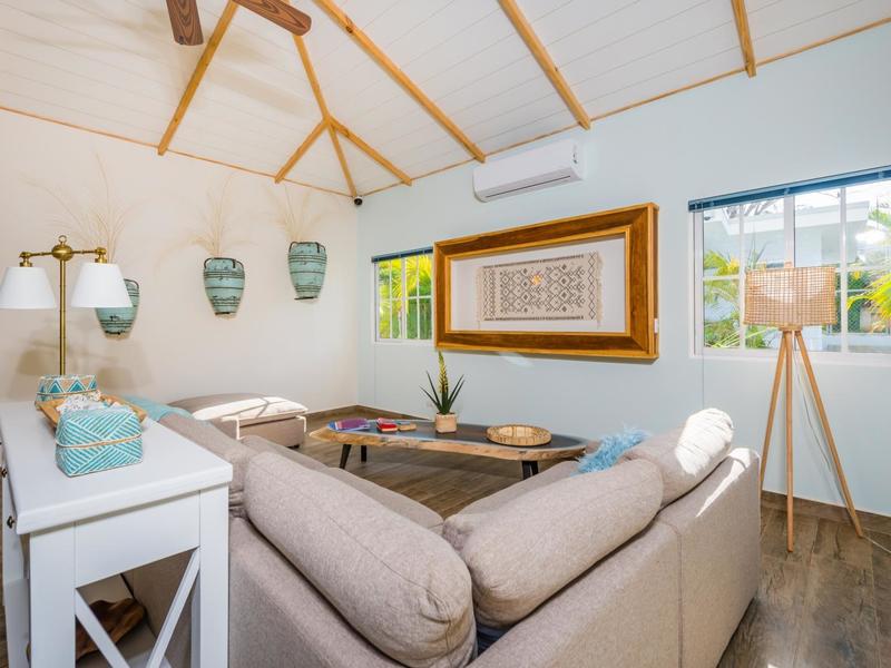 The entire property is gated. As you enter through the main gate, you will park your car in the shade of a thatched roof on the right and enter the bright and welcoming 270 sq ft Reception building on your left. Here you will welcome your guests and offer concierge service by selling them tours and sharing with them your favorite restaurants and beaches in the area. Just behind it is an 861sq ft, 2 bedroom, 1 bathroom freshly decorated home with its own private deck outback and patched with local flowers and trees. This house has its own good-sized private circular pool completely surrounded by tropical plants for privacy.