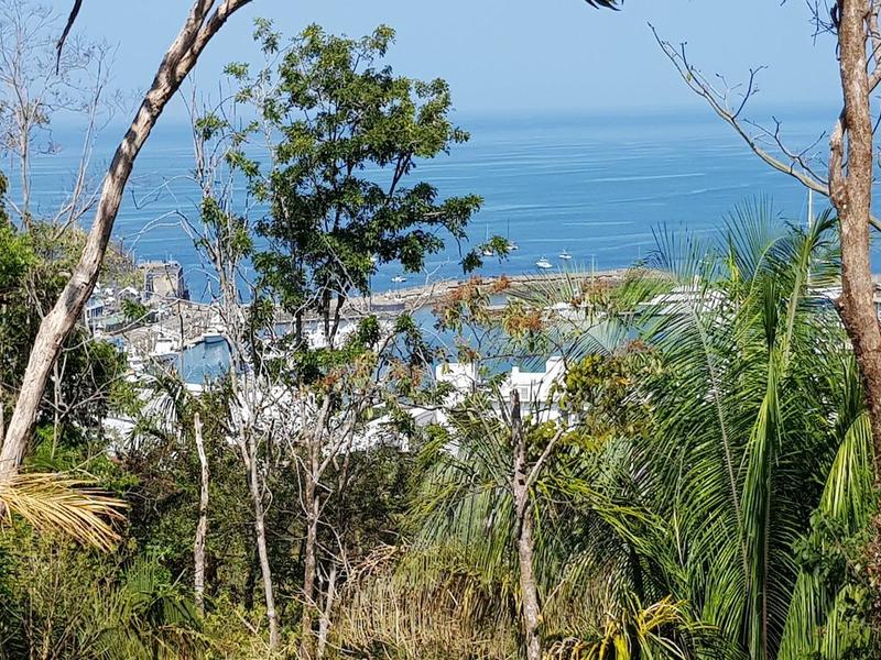 Ocean and Marina View Lot in Manuel Antonio Puntarenas this 8200 m2 lot has views of the ocean, marina, and mountains. Easy access by a paved road and electricity and water are available. Close to the amenities for living or visiting. The lot has several natural building areas and entrances.