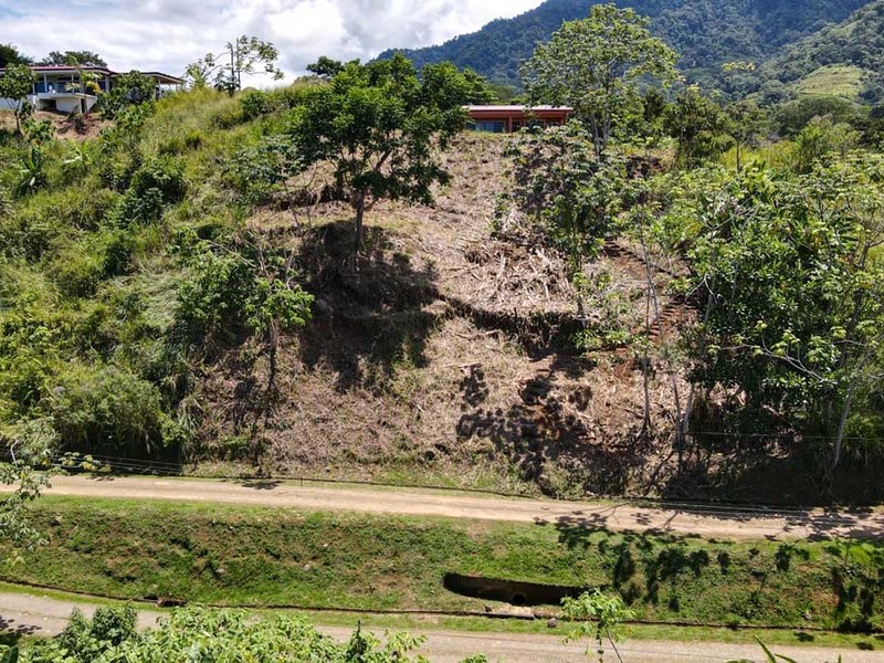 This lot is situated within a gated community, nestled in the picturesque mountains above the charming village of Ojochal. It boasts expansive views of the ocean and valley. Essential amenities such as electricity, legal water, and fiber-optic internet are readily available at the roadside. The elevated altitude ensures delightful tropical breezes, providing a cool and comfortable environment. While this specific lot requires extensive earth movement for optimal building conditions, we have a selection of recommended crews nearby who can efficiently handle this task.